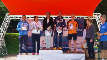 Sie meisterten diese Herausforderung recht ordentlich: Tino wurde 7. in der Altersklasse TM45 in der Zeitvon 2:26:01, Rigobert wurde 10. in der Altersklasse TM55 in der Zeit von 2:41:31. Florian kam als zweiter aus dem Wasser, nach dem Radfahren kam er als dritter in die Wechselzone und ging mit einem Rückstand von 19 Sekunden auf die Laufstrecke. Wie sich dann herausstellte, erhielt Florian beim Radfahren leider eine Zeitstrafe von 2 Minuten. In einem beherzten Lauf konnte er den vor ihm Laufenden nicht nur einholen, sondern auch die Strafzeit wettmachen, so dass er am Ende mit einer Zeit von 2:00:48 verdienter 2.ter Gesamtsieger hinter Jean-Pierre De Lannoy wurde und 1. in seiner Altersklasse TM20.